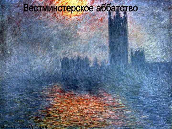 • В XXв. в зарубежном изобразительном искусстве возникло направление импрессионизм (от франц. impression – впечатление). Импрессионисты фиксировали в своих картинах мимолётные впечатления от реально существующего мира. • Поучительная и даже забавная история произошла с живописной работой «Вестминстерское аббатство» французского художника – импрессиониста Клода Моне (1840 -1926).