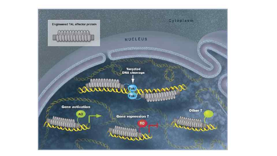 Распознавание ДНК TAL-эффекторами В повторах длиной 34 а. о. в положениях 12 и 13 имеются два вариабельных а. о. (repeatvariable di-residue (RVD)), которые участвуют в распознавании нуклеотидов ДНК N – Asn, D – Asp, G – Gly, I - Ile