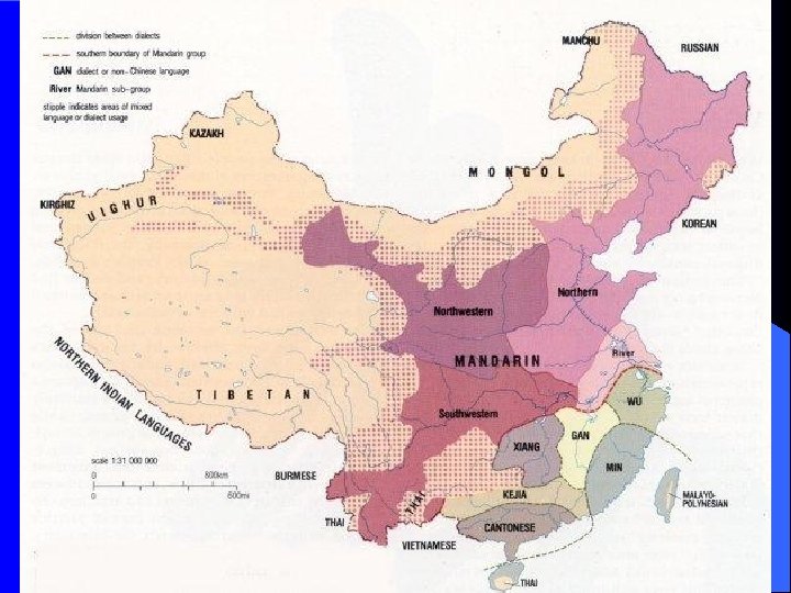 Eight Major Dialects l Northern (Mandarin) 715 million (71. 5%) l Jiangsu-Zhejiang (Wu) 85 million (8. 5%) l Cantonese (Yue) 50 million (5%) l Hunan (Xiang) 48 million (4. 8%) l Hakka (Kejia) 37 million (3. 7%) l Southern Min 28 million (2. 8%) l Jiangxi (Gan) 24 million (2. 4%) l Northern Min 13 million (1. 3%) (De. Francis (1984) The Chinese Language p. 58 )