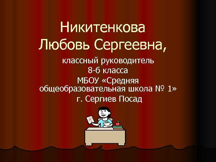 Никитенкова Любовь Сергеевна, классный руководитель 8 -б класса МБОУ «Средняя общеобразовательная школа № 1» г. Сергиев Посад
