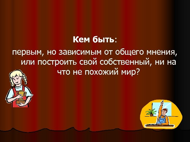 Кем быть: первым, но зависимым от общего мнения, или построить свой собственный, ни на что не похожий мир?