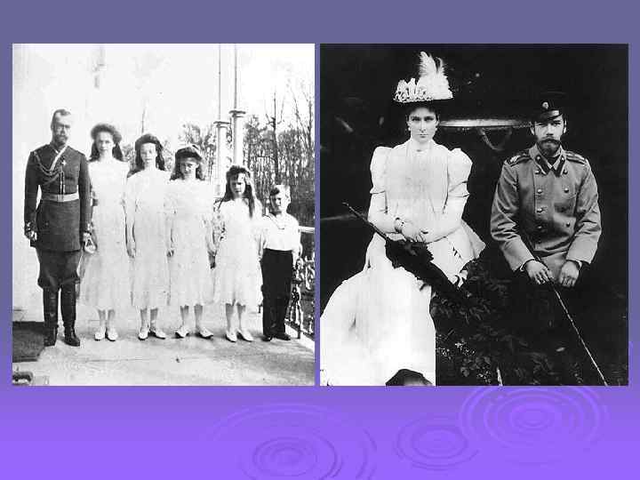 Семья императора Императрица Александра Федоровна (урожденная принцесса Алиса Гессен. Дармштадтская) была для царя не только женой, но и другом, советчиком. Они обвенчались 14 ноября 1894. У них было пятеро детей: Ольга (1895 -1918), Татьяна (1897 -1918), Мария (1899 -1918), Анастасия (1901 -1918), Алексей (1904 -1918).