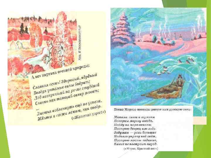 Русская природа Любовь к полям, лесам, рекам своей родины, её снегам и морозам, её весеннему «Зелёному Шуму» , осенней прелести увядания зародилась у Некрасова в ранние детские годы и воспета в его поэзии.