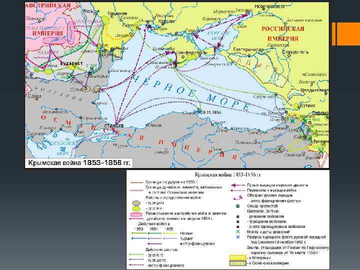 Крымская война (1853 -1856 г. ) “Война России против всего мира”. В этой войне России противостояли Франция, Англия, Турция. Эта война была проиграна Россией. В ходе неё были выявлены отставание России в экономическом плане, изъяны в системе организации армии. После этой войны Николай I провёл важные реформы военного аппарата.