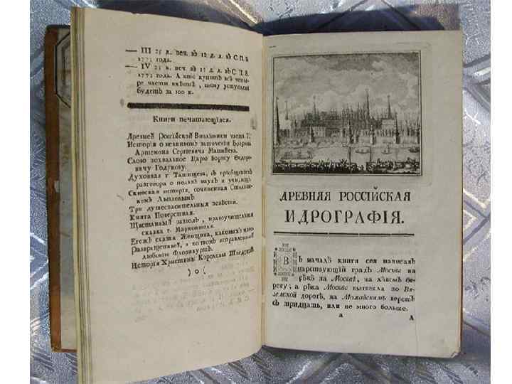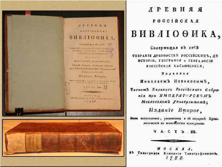 Издание памятников истории Одной из важнейших задач Новиков считал борьбу против преклонения дворянства перед иностранщиной. Он выпустил ряд исторических изданий: «Опыт исторического словаря о российских писателях» (1772), а также книги «Древняя Российская Вивлиофика…» — издававшиеся ежемесячно памятники русской истории (1773— 1776), «Древняя Российская Идрография» (1773 — описание московского государства, составленное при Фёдоре Алексеевиче) и др. Он первым издал «Скифскую историю» А. И. Лызлова.