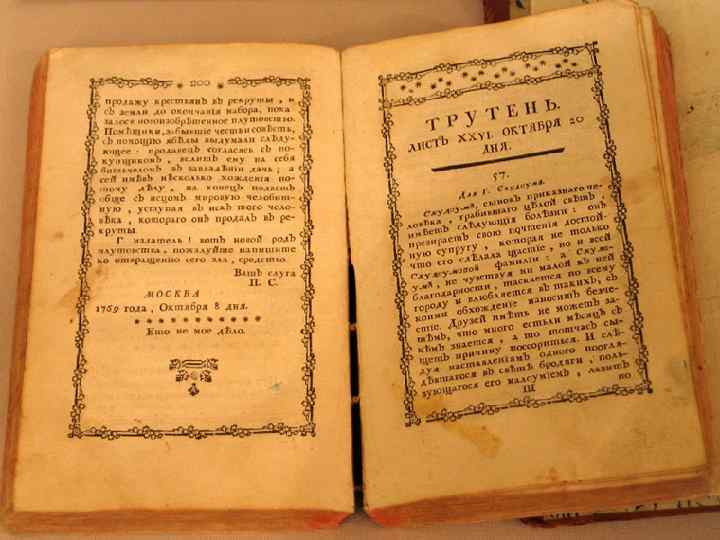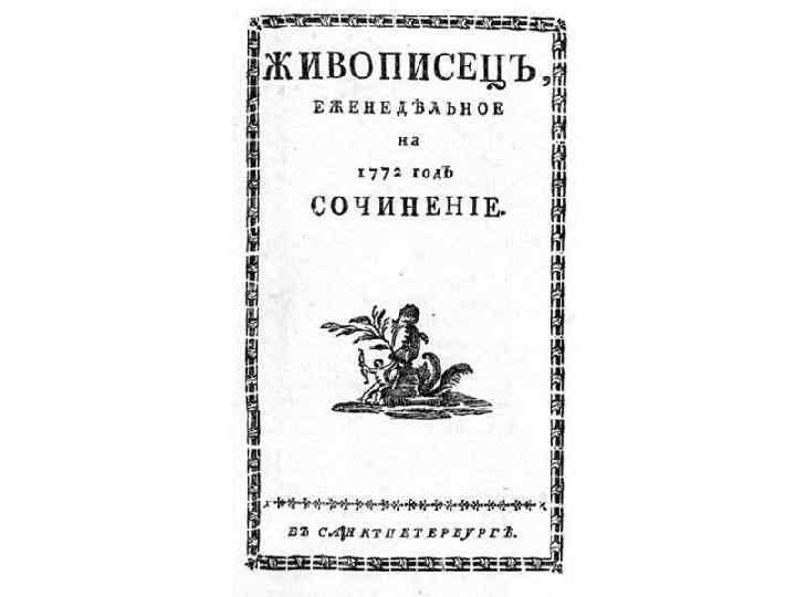 Начало журналистской деятельности • В 1769 году Новиков стал издавать еженедельный сатирический журнал «Трутень» (1769— 1770). По своему содержанию «Трутень» вступил в полемику со «Всякой Всячиной» , журналом самой Екатерины II. Борьба была неравная: Новиков в апреле 1770 года перестает его издавать. • В 1772 году Новиков выступил с новым сатирическим журналом — «Живописцем» , лучшим периодическим изданием XVIII века. «Живописец» проводил те же идеи, что и «Трутень» .