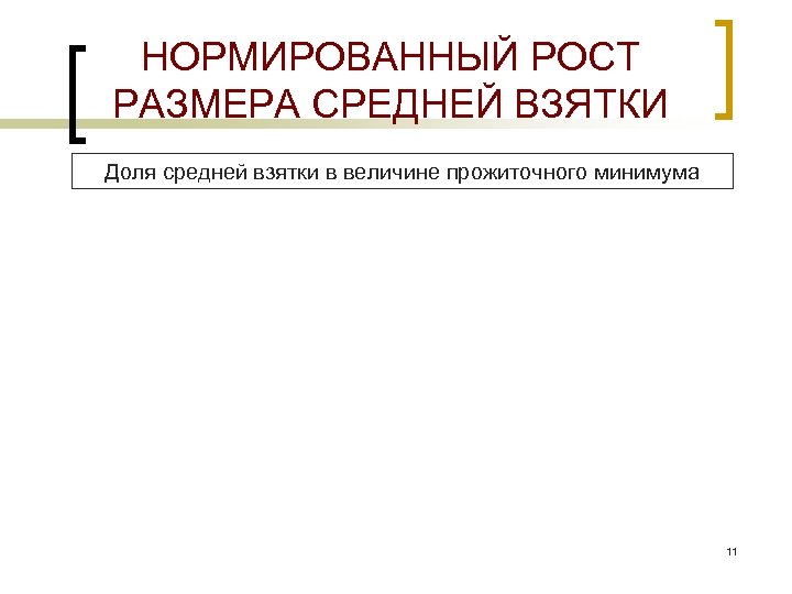 НОРМИРОВАННЫЙ РОСТ РАЗМЕРА СРЕДНЕЙ ВЗЯТКИ Доля средней взятки в величине прожиточного минимума 11