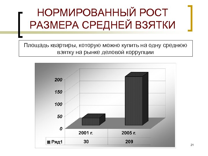 НОРМИРОВАННЫЙ РОСТ РАЗМЕРА СРЕДНЕЙ ВЗЯТКИ Площадь квартиры, которую можно купить на одну среднюю взятку на рынке деловой коррупции 21