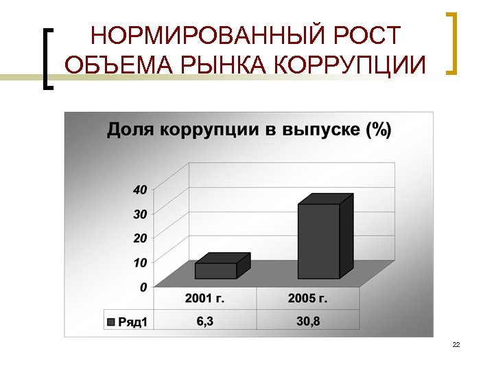 НОРМИРОВАННЫЙ РОСТ ОБЪЕМА РЫНКА КОРРУПЦИИ 22