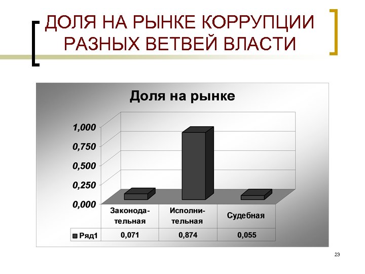 ДОЛЯ НА РЫНКЕ КОРРУПЦИИ РАЗНЫХ ВЕТВЕЙ ВЛАСТИ 23