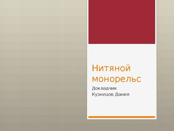 Нитяной монорельс Докладчик Кузнецов Данил