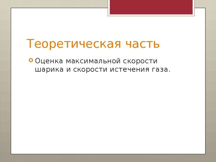 Теоретическая часть Оценка максимальной скорости шарика и скорости истечения газа.