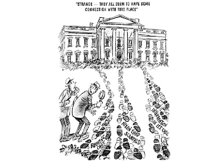 For what was Nixon guilty? • Cover-up of break in • “dirty tricks” for reelection • “enemies list” • Wiretapping of gov’t employees and reporters