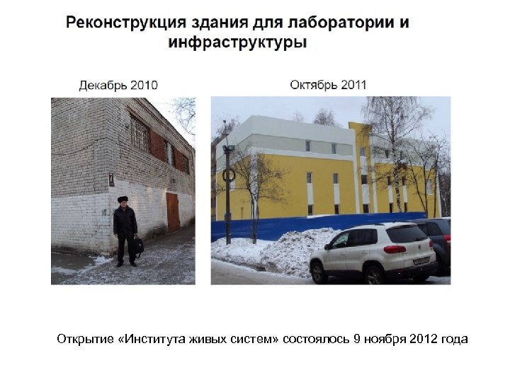 Открытие «Института живых систем» состоялось 9 ноября 2012 года