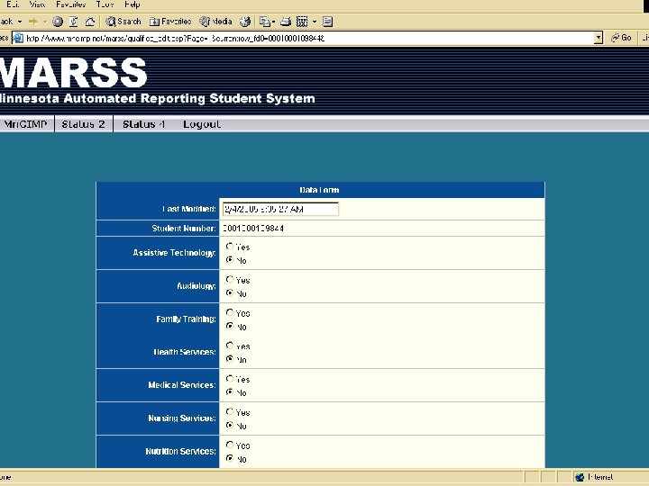 MN’s Existing Data System • MARSS System – Minnesota Automated Reporting Student System • Unique identifier assigned at time of enrollment – Initial evaluation – Determination of eligibility