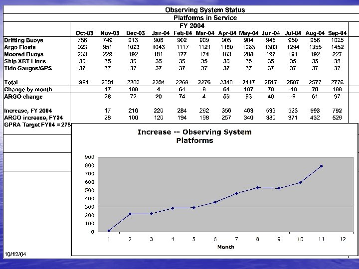 FY 2003 -04 Priorities Incremental advancements across all networks with emphasis on these priority areas: 1. Sea Surface Temperature -- the single most 2. 3. important variable in the heat, carbon, and water cycles; used to drive all forecast models Sea level change -- the most immediate impact of climate change Ocean carbon inventory -- priority for climate change science and technology policy