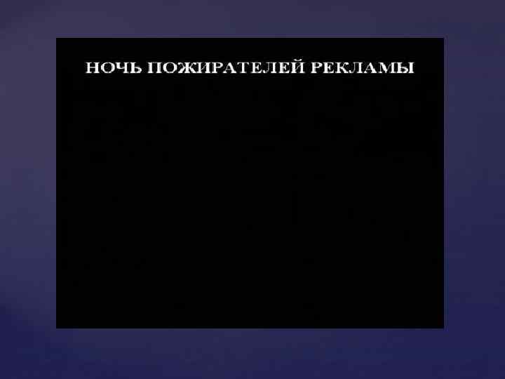 Ночь пожирателей рекламы ( «The Night of the AD Eaters» ) — мировое киношоу, суть которого состоит в показе рекламных роликов. Уникальность проекта заключается в том, что ролики показываются на экранах больших кинотеатров в течение ночи (три блока по 1, 5 часа) не в качестве рекламы, а как произведения искусства.
