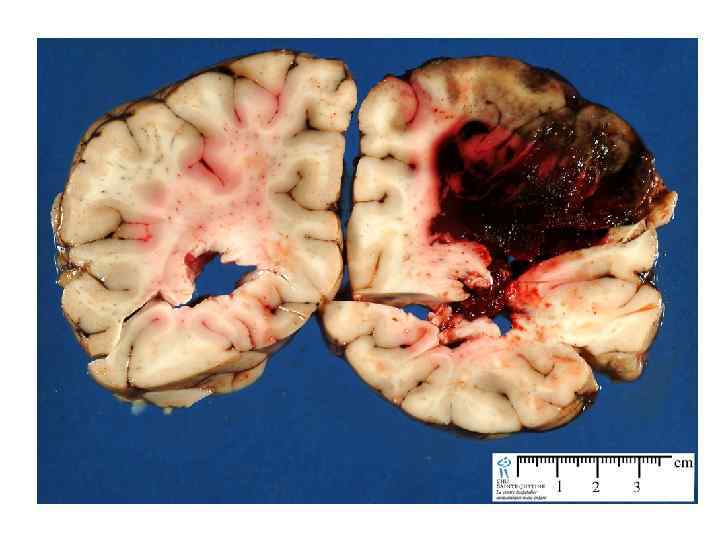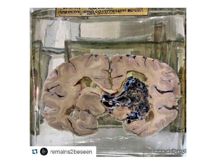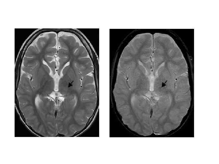 Церебральная кавернозная венозная мальформация (кавернозная гемангиома) • • 48 – 86% - в полушариях 5 – 13% сосудистых мальформаций ЦНС Манифестирует в 40 -60 лет Клиническая картина: обмороки (60%), неврологический дефицит (50%), кровоизлияния (20%), гидроцефалия (50%)