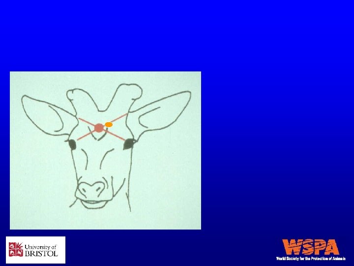 Точка пересечения двух воображаемых линий, соединяющих верхний угол глаза с основанием рогового бугорка