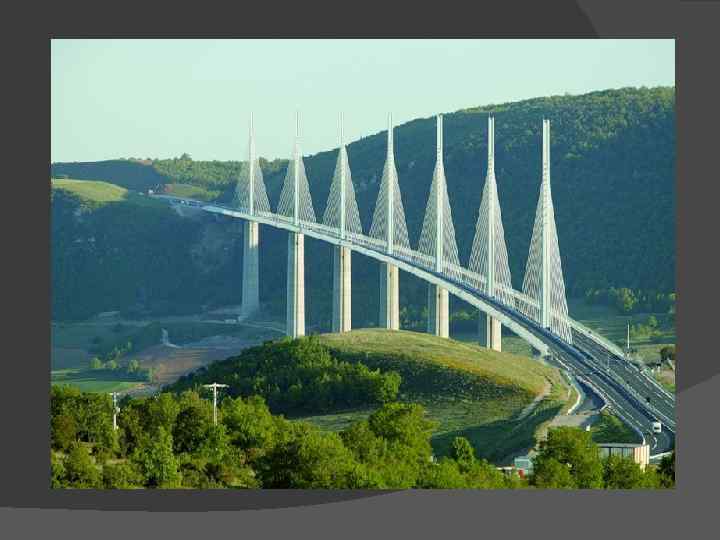 Виадук Мийо -один из самых длинных (2, 5 км) и высоких (одна из его опор выше Эйфелевой башни) мостов в мире, который выполнил важную функцию – положил конец огромным пробкам на трассе А 75, связывающей Южную Францию с Испанией. Машины в летний сезон скапливались у узкого переезда через реку Тарн. Новый мост стал продолжением высокоскоростной магистрали и очень удачно вписался в благородный французский пейзаж. Мост был торжественно открыт 14 декабря 2004 года. Проект вантового красавца изначально поражал своей амбициозностью. Семь высоченных опор, километры бескрайнего дорожного полотна, ванты, покрытые специальной, тройной защитой от коррозии Интересный факт Виадук оборудован многочисленными приборами и датчиками, отслеживающими малейшие сдвиги в его конструкции – вплоть до миллиметра. Аппаратура делает около 100 замеров в секунду.