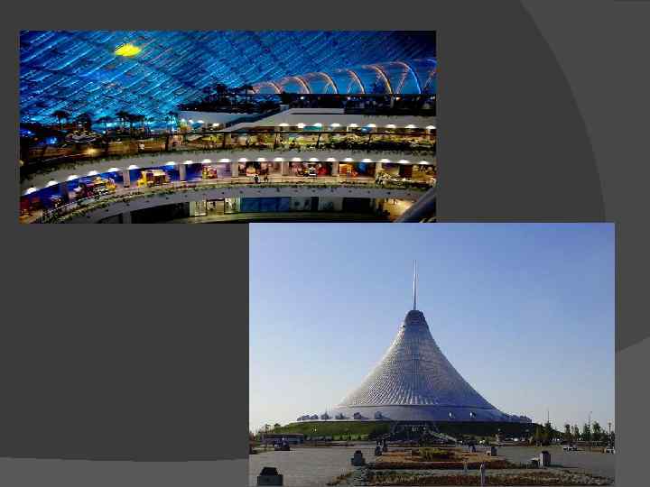 Хан Шатыр на этот раз Фостер позволил себе самые смелые фантазии, создав торговый центр в столице Казахстана в виде крупнейшего шатра в мире. Ажурная крыша, сконструированная из сети стальных вант, покрывает гигантскую территорию площадью 140 тысяч квадратных метров (больше десяти футбольных полей!). Внутри находятся сотни магазинов, супермаркет, рестораны, большой парк, спа-центр и – удивительное явление в холодной казахской столице – искусственный пляжный курорт с песком, привезенным с Мальдив. Открыт был 6 июля 2010 года. Общая площадь Хан Шатыра — 127 тысяч Интересный факт Крыша торгово-развлекательного центра сделана в виде не симметричного, а наклонного конуса. Все тросы в ней крепятся под разными углами. Чтобы завершить установку крыши в рекордное время (за три теплых летних месяца), на стройке трудились 650 промышленных альпинистов.
