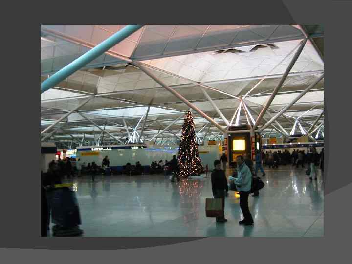 Аэропорт Станстед Начав работу над терминалом аэропорта «Станстед» , что в 50 км от Лондона, Лорд Фостер нарушил все существующие правила постройки подобных зданий. Он отказался от дорогих и не самых эффективных проектов двух главных лондонских аэропортов - «Хитроу» и «Гатвика» вооружившись своим любимым принципом «сложная простота» . Особенность конструкции терминала — крыша, которая держится на каркасе из труб в форме перевернутых пирамид. Архитектор хотел, чтобы она выполняла свою главную функцию – защищала от дождя и снега, не мешая при этом потокам света легко проникать в здание, по форме напоминающее огромный стеклянный куб. Новое здание хорошо вписалось в сельский пейзаж, и архитекторы по всему миру взяли фостеровский проект на вооружение.