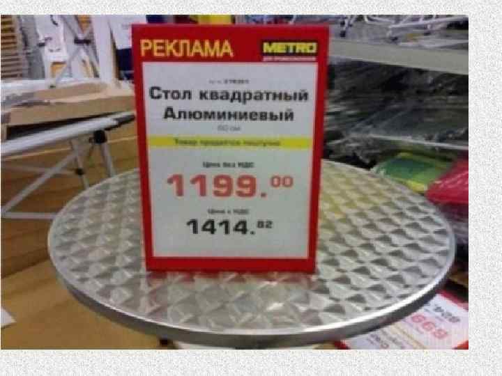 • Пункт. Оформлениепродажи отдельных 19 ППРФ «Правила ценников № 50 видов товаров» в редакции от 27. 01. 2009 «Продавец обязан обеспечить наличие единообразных и четко оформленных ценников на реализуемые товары с указанием наименования товара, его сорта, цены за вес или единицу товара, подписи материально ответственного лица или (и) печати организации, даты оформления ценника
