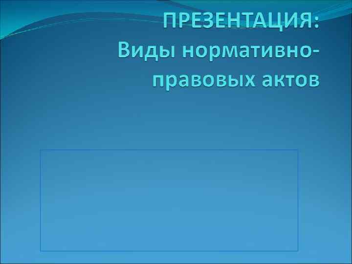 Виды нормативно – правовых актов. Классификация нормативно – правовых актов производится по различным основаниям : по юридической силе; по содержанию; по объёму и характеру действия; субъектам, их издающим.