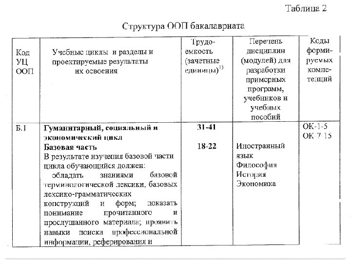 Основные общекультурные компетенции (п. 5. 2) ОК 1 способностью использовать основы философских формирования мировоззренческой позиции (ОК 1); знаний для ОК 2 способностью анализировать основные этапы и закономерности исторического развития общества для формирования гражданской позиции (ОК 2); ОК 3 способностью использовать основы экономических знаний в различных сферах жизнедеятельности (ОК 3); ОК 4 способностью использовать основы правовых знаний в различных сферах жизнедеятельности (ОК 4); ОК 5 способностью к коммуникации в устной и письменной формах на русском и иностранном языках для решения задач межличностного и межкультурного взаимодействия (ОК 5); ОК 6 способностью работать в команде, толерантно воспринимая социальные и культурные различия (ОК 6); ОК 7 способностью к самоорганизации и самообразованию (ОК 7); ОК 8 способностью использовать методы и средства физической культуры для обеспечения полноценной социальной и профессиональной деятельности (ОК 8);