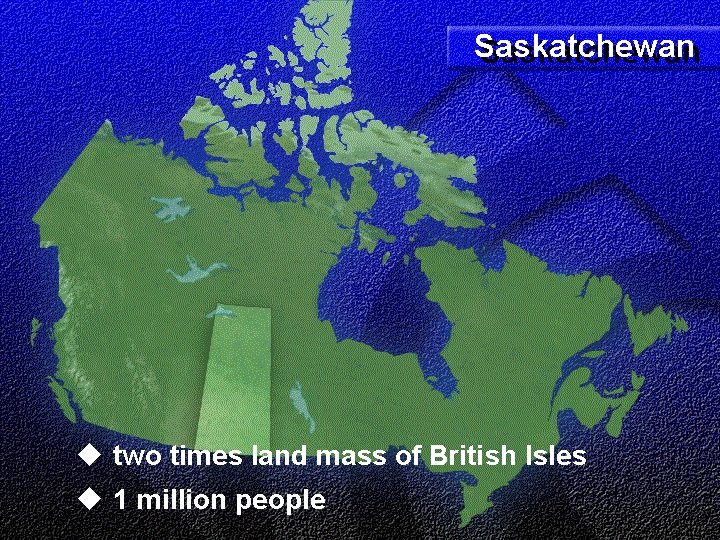 Northern Success: Local Partnership / Global Leadership geographic span 320, 000 km 2 is the geographic span of the Northern Administration District (NAD); which is half of Saskatchewan's land area, but is home to less than 4 percent of the province's population Large Area Small Population with few communities Tough Terrain