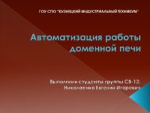 Автоматизация работы доменной печи Выполнили студенты группы СВ-13: