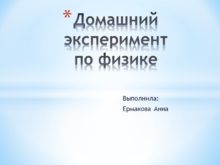 Выполнила: Ермакова Анна Домашний эксперимент по физике ЗАДАЧИ: