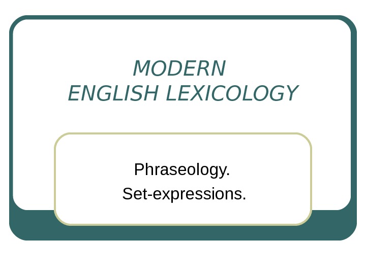 Презентация MODERN ENGLISH LEXICOLOGY