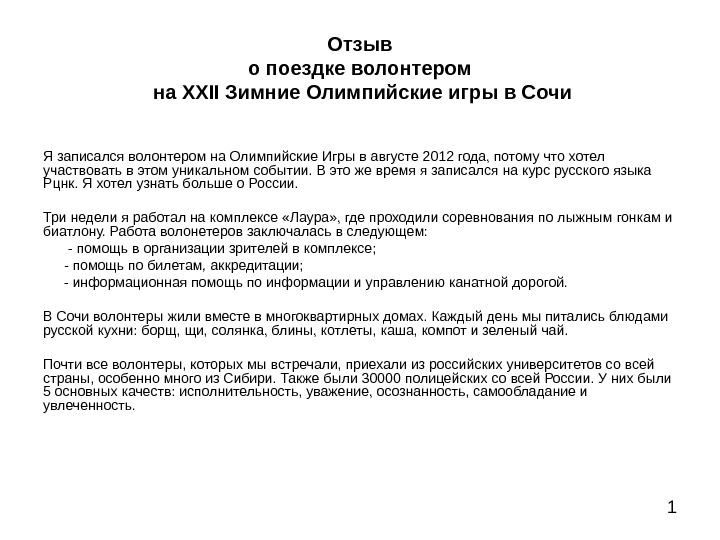 Презентация volunteer in Sochi