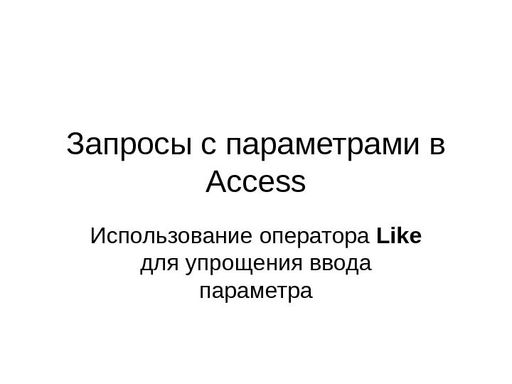 Презентация БД13 1 Яз SQL Like в запросах