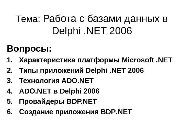Презентация БД в Delphi.NET 2006