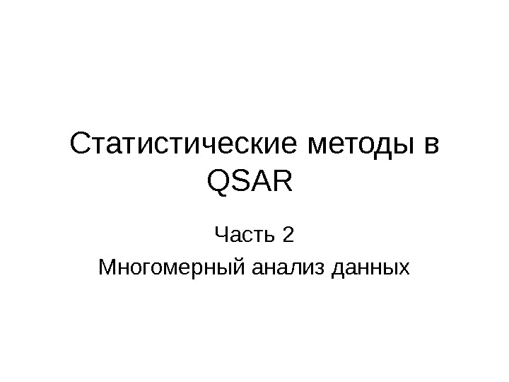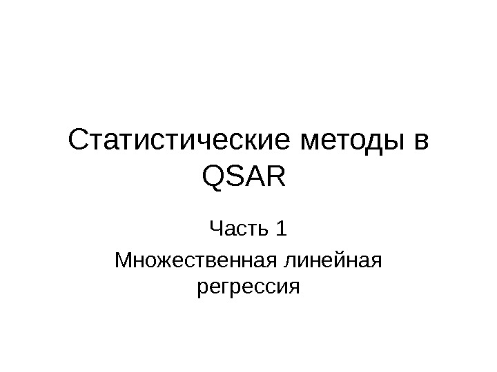 Презентация Вопрос No.6 Статистические методы в QSAR — 1