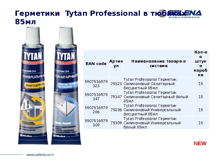 Презентация Герметики Tytan Professional в блистерах 85ml
