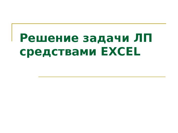 Презентация Л6 Решение задачи ЛП средствам EXCEL