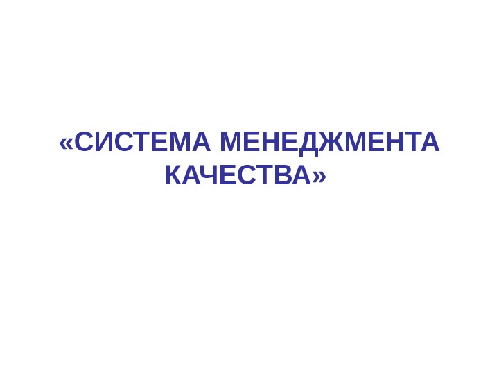 Презентация ЛЕКЦИЯ No.8 СИСТЕМА МЕНЕДЖМЕНТА КАЧЕСТВА СМК