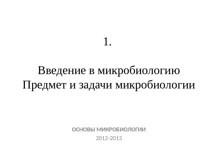 Презентация ЛЕКЦИЯ No. 1 — Введение в Микробиологию