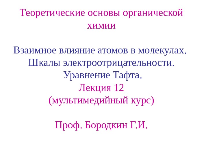 Презентация Лекция 12 Taft atoms in molecule