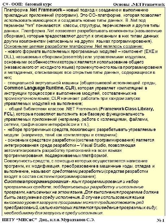 Презентация Лекция 1S C Основы .NET Framework