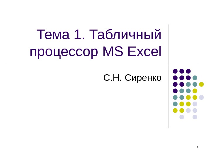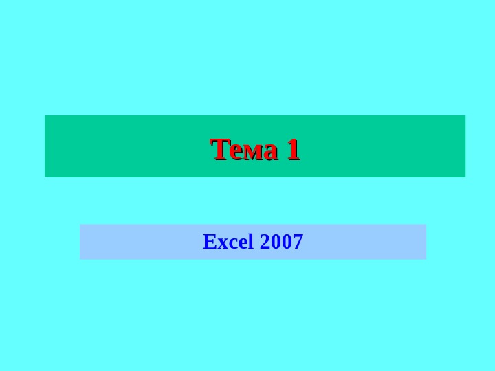 Презентация Лекция 2. Excel продолжение 1