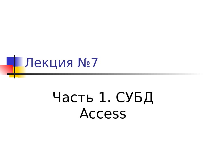 Презентация Лекция 7. Access Excel