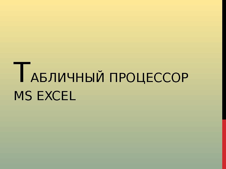 Презентация Лекция 8 — Табличный процессор Excel