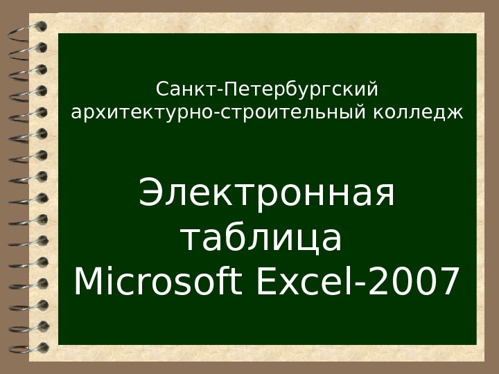 Презентация Лекция Excel 2007