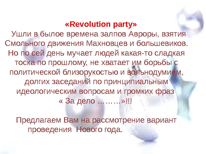Презентация Новый год или «Revolution party»
