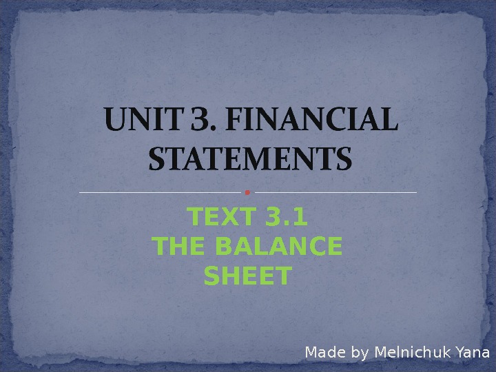 Презентация ТЕXT 3.1 The balance sheet Мельничук