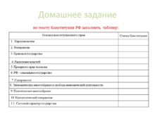 Домашнее задание по тексту Конституции РФ заполнить таблицу: